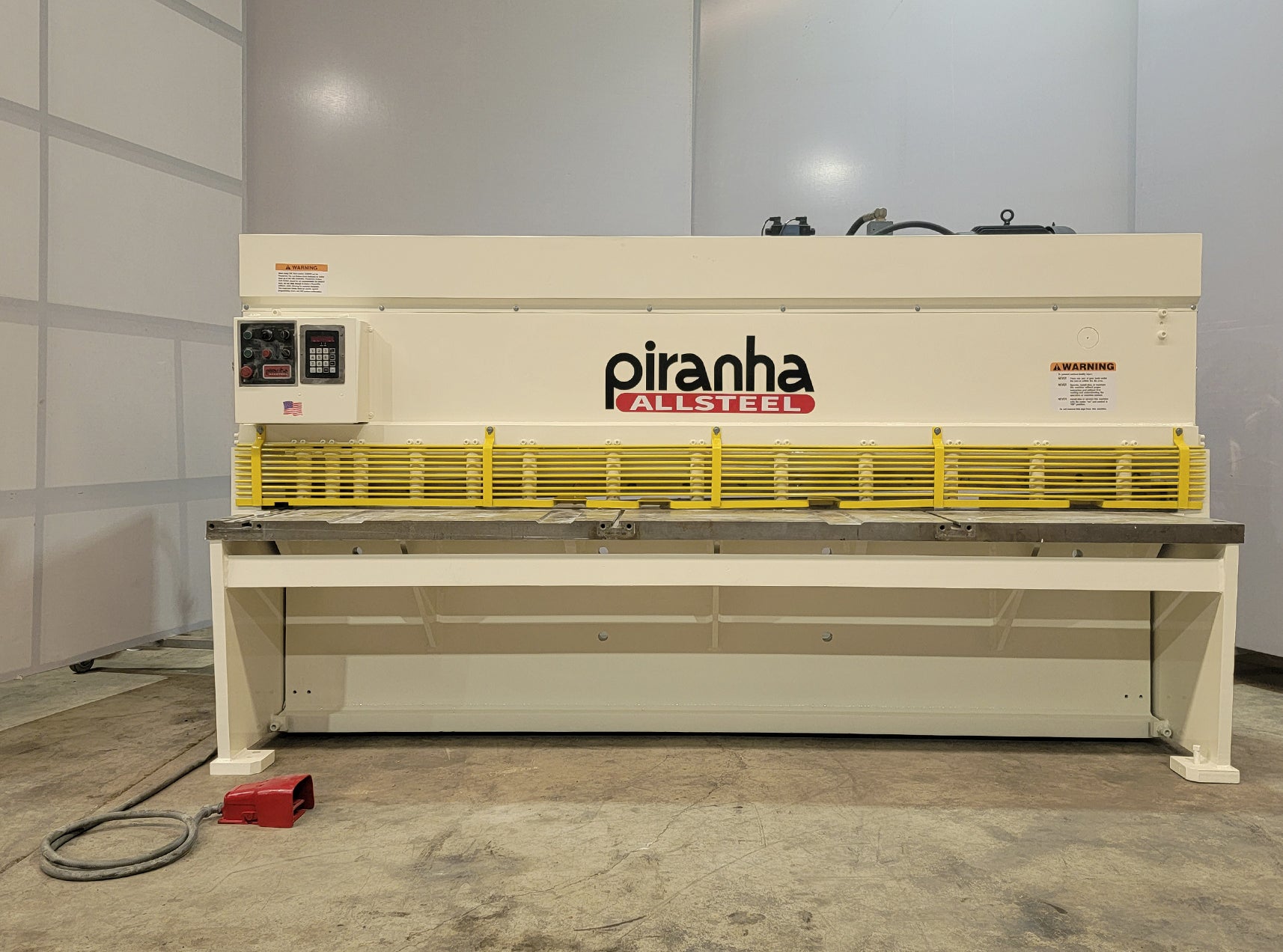 This Piranha Allsteel M1/4-10 Hydraulic used Shear is the ultimate high-performance solution for clean, precise cuts on sheets up to 1/4" thickness with a 10-foot cutting length. Equipped with a powerful 20 HP motor and a motorized backgauge for rapid adjustments, this industrial shear is engineered to maximize productivity in metal fabrication shops and steel service centers.